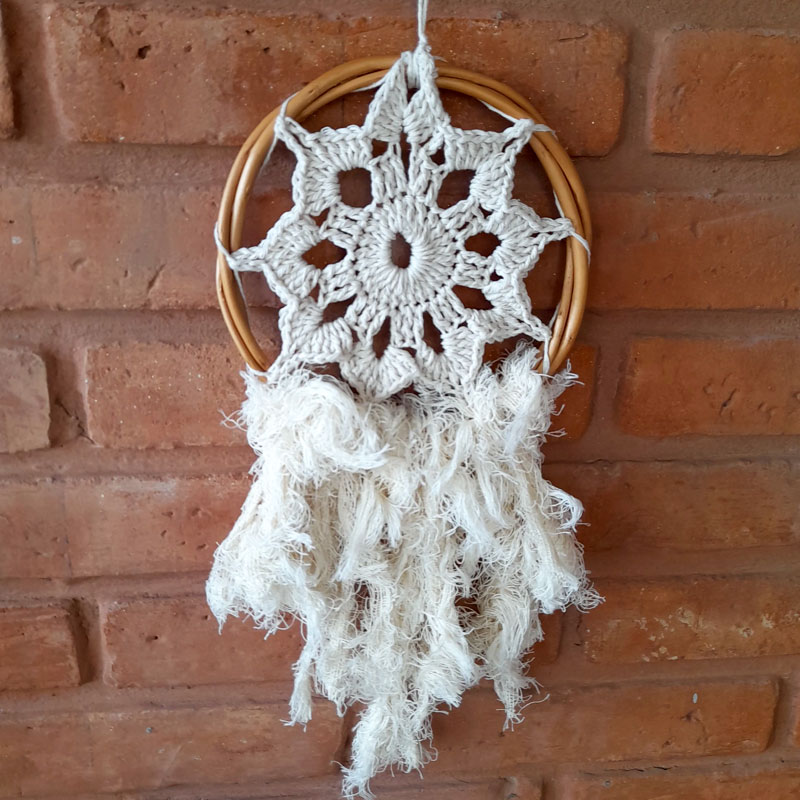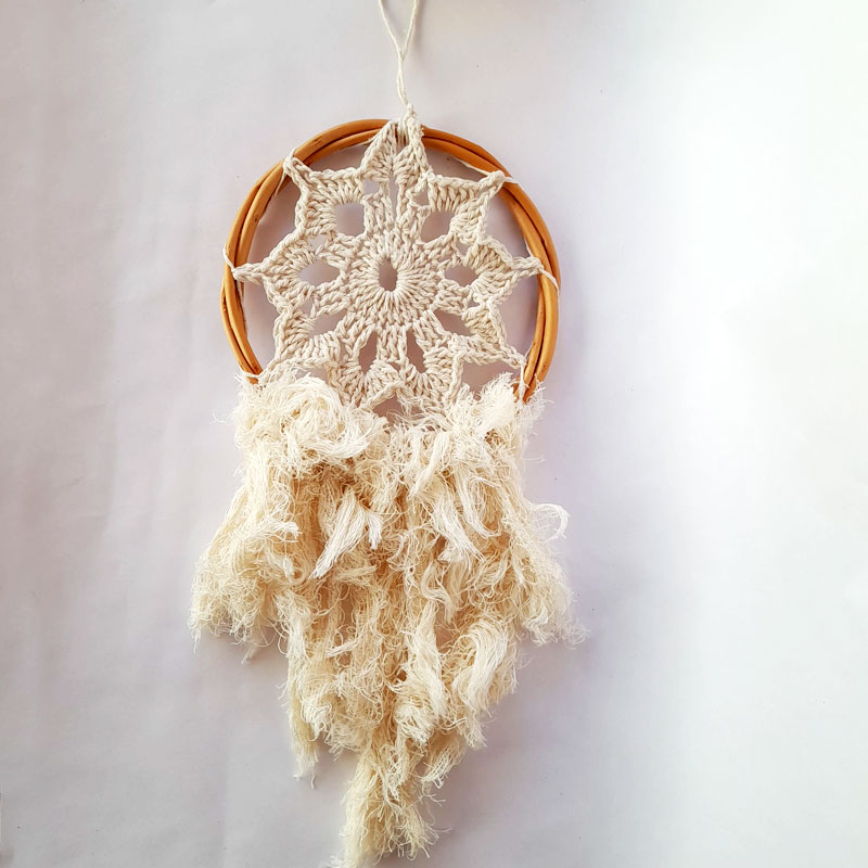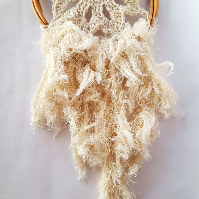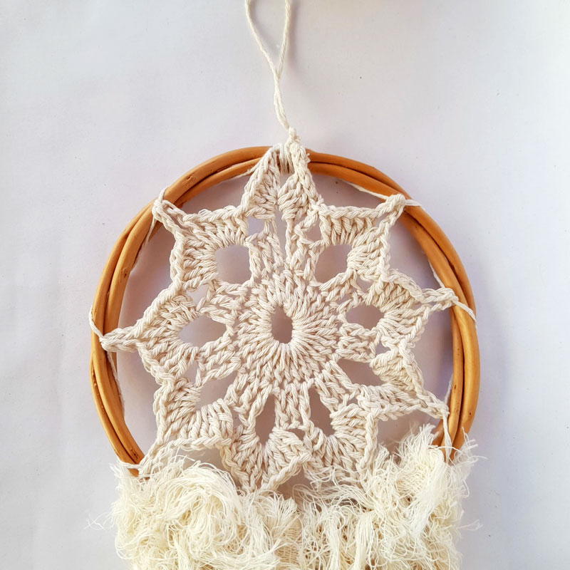 El atrapasueños Chico Tejido Mandala y Deco Crudo mide 36cm de alto x 2cm de largo x 16 cm de ancho.
