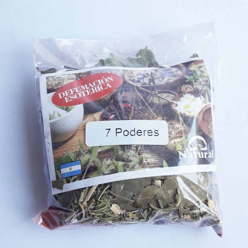 La defumación esotérica económica 7 poderes sirve para sahumar en sahumador luego de utilizar carboncitos. Presentación: Bolsita de 11x7x2cm.