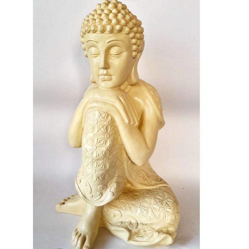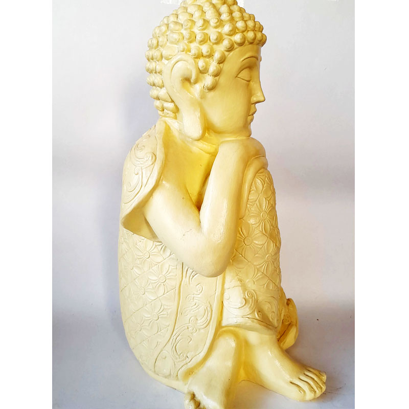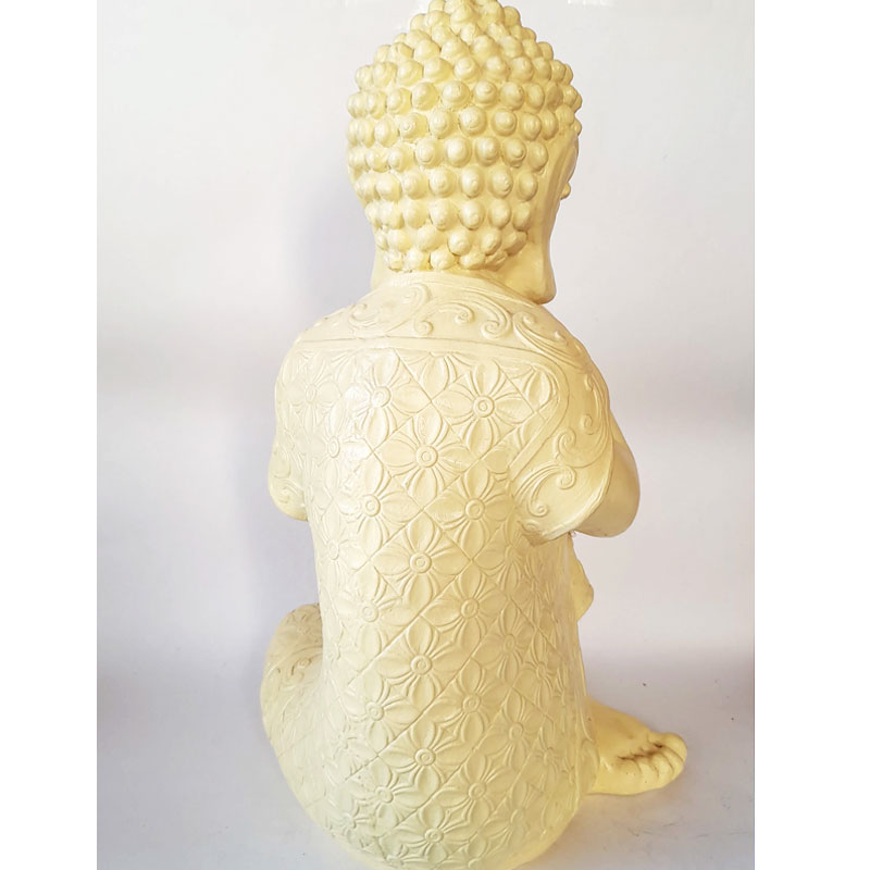 Esta figura de buda contemplativo mide 39cm de alto, 24cm de ancho y 23cm de largo. Está pintado en color manteca, cuenta con proceso de impermeabilizado y barnizado, apto para exteriores e interiores.