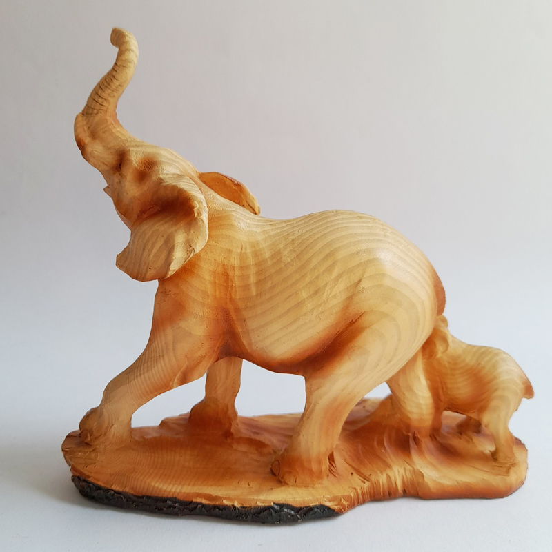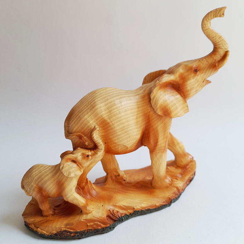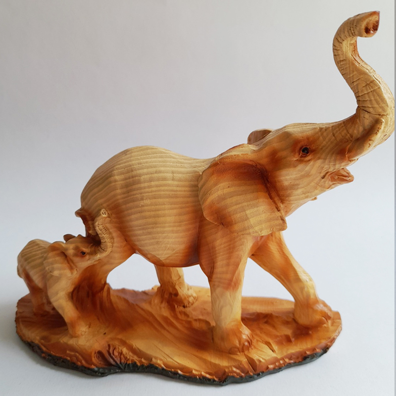 Esta figura de decoración se compone de una familia elefante mamá y bebé fabricados en símil madera sobre una base. Simboliza el amor y la unión familiar. Se trata de una pieza inseparable con gran trabajo de detalle.