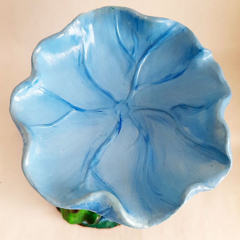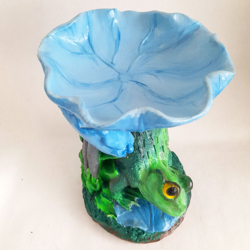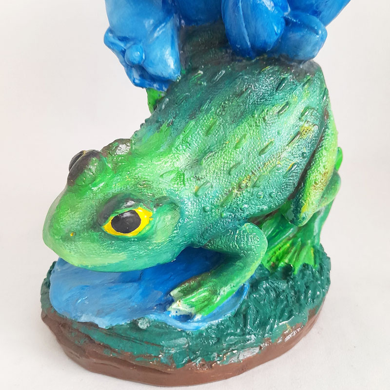 La figura multiuso caramelero modelo Sapo con Flor Celeste mide 19cm de alto x 14cm de ancho x 12cm de largo. Cuenta con un gran nivel de detalle, sumamente realista, que representa la vida del ecosistema acuático.