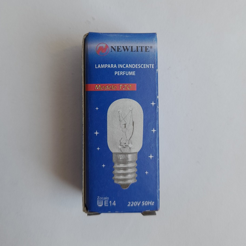El foquito para Lámpara de Sal del Himalaya es una lámpara incandescente modelo T20 con zóalo E14 de 15W clara. 220V 50hz.