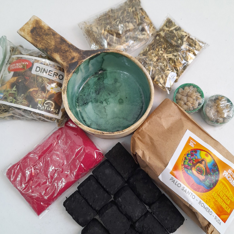 - 1 Bolsa Defumación Pachamama Energía y Abundancia de 30gr (mix palo santo, romero y ruda). El palo santo es un purificante, relajante, levanta el estado de ánimo; el romero favorece a la meditación y a la relajación; la ruda aleja las ondas negativas de ambientes y personas.