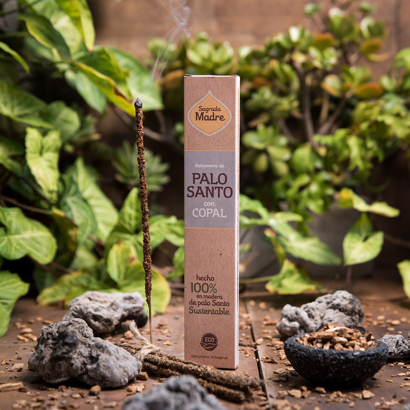 El sahumerio de Palo Santo con Copal de Sagrada Madre forman un humo que purifica y sana.