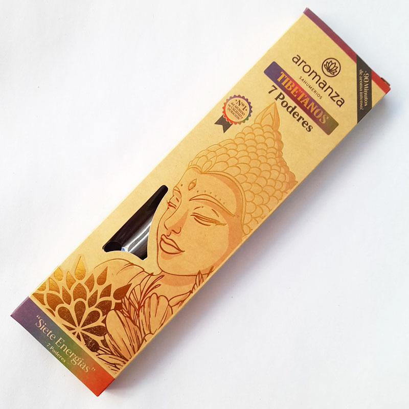 La caja de Sahumerio Tibetano 7 Poderes 7 Energías Aromanza contiene 8 varillas gruesas extra fuertes.
