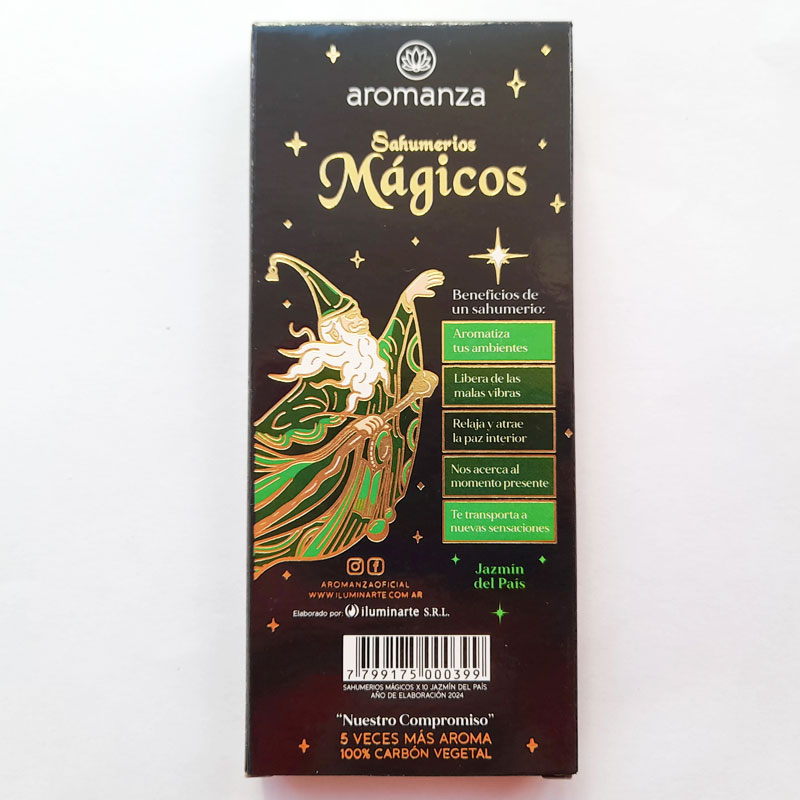 Los Sahumerios Mágicos Jazmín del País Aromanza se componen de 10 varillas de 13cm de largo. Su aroma intenso aromatiza tus ambientes en la mitad del tiempo que un sahumerio convencional.