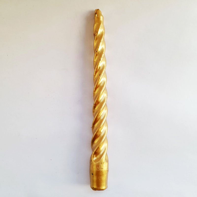 La Vela Torneada Dorada de 19cm de alto es ideal para decorar una mesa generando un espacio de calidez.